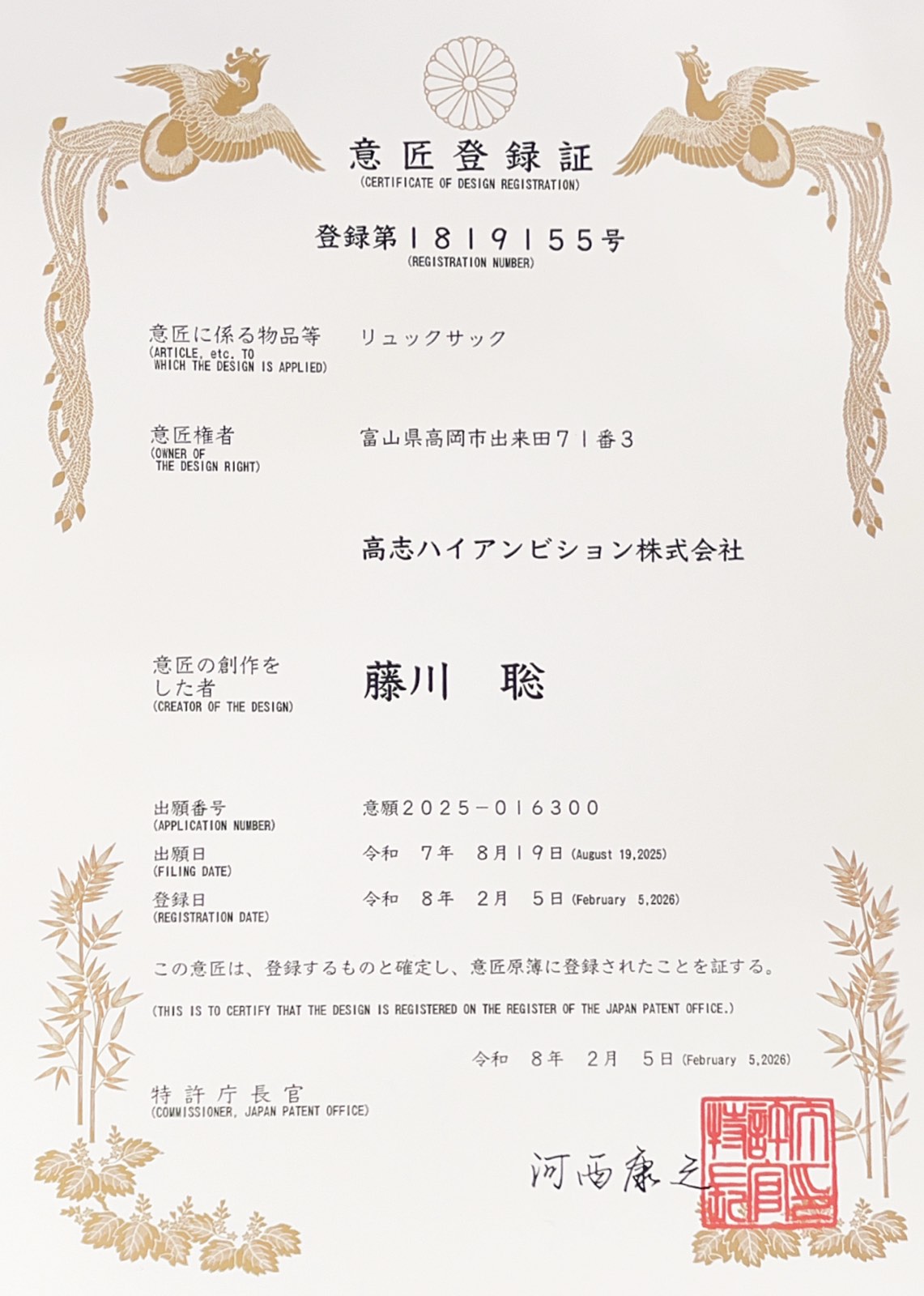 このたび、弊社が開発したリュックサックが意匠登録され、デザインの独自性が正式に認められました。本製品は、防犯性と機能性を兼ね備えた独自構造を採用しており、日常使いから旅行まで幅広くご活用いただけます。今後も開発をさらに進め、皆さまに長く愛される製品づくりを目指してまいります。